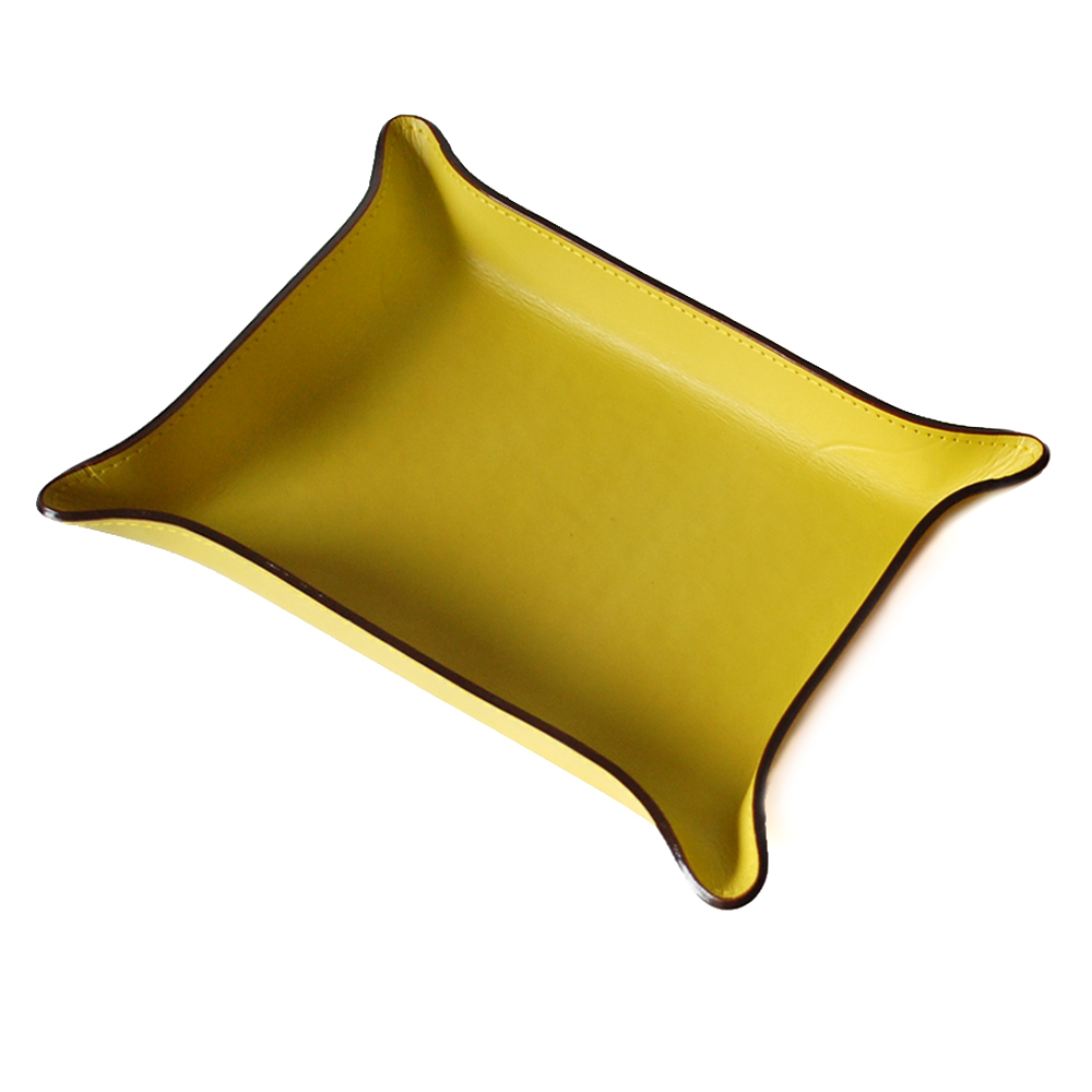 - SALE★送料込み★かばん屋さんの本革牛革レザースクエアトレー★ペントレー コイントレイ カルトン 万年筆置き★イエロー 黄色