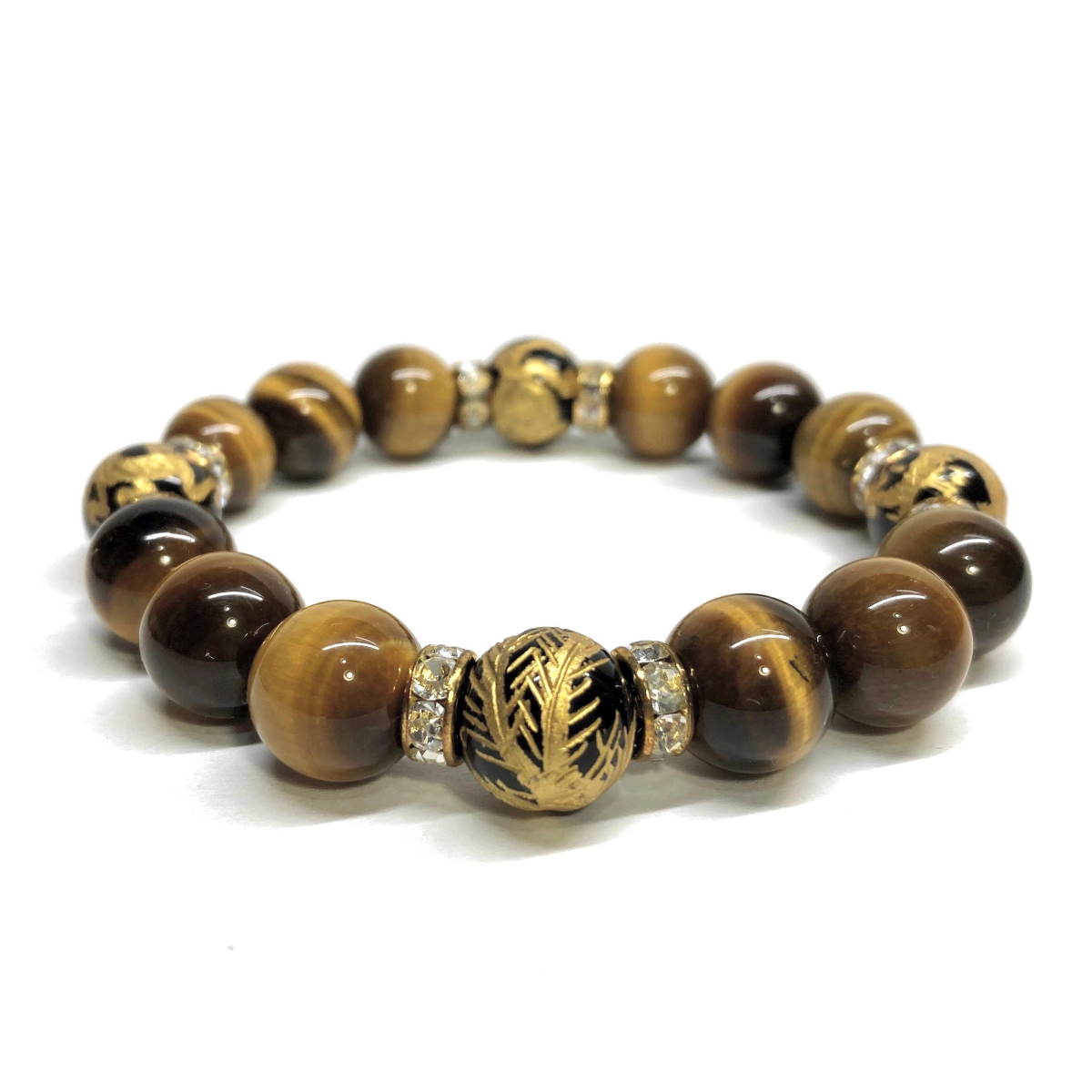 - 四神獣金彫オニキス×タイガーアイ 12mm パワーストーン ブレスレット天然石 青龍 白虎 玄武 朱雀 運気上昇 開運 金運 お守り 四神相応 G