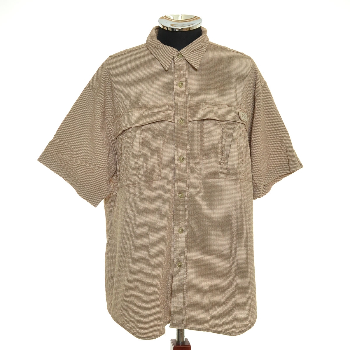 > 〇562876 Columbia コロンビア ○半袖 シャツ シアサッカー サファリシャツ ギンガムチェック サイズM メンズ ブラウン