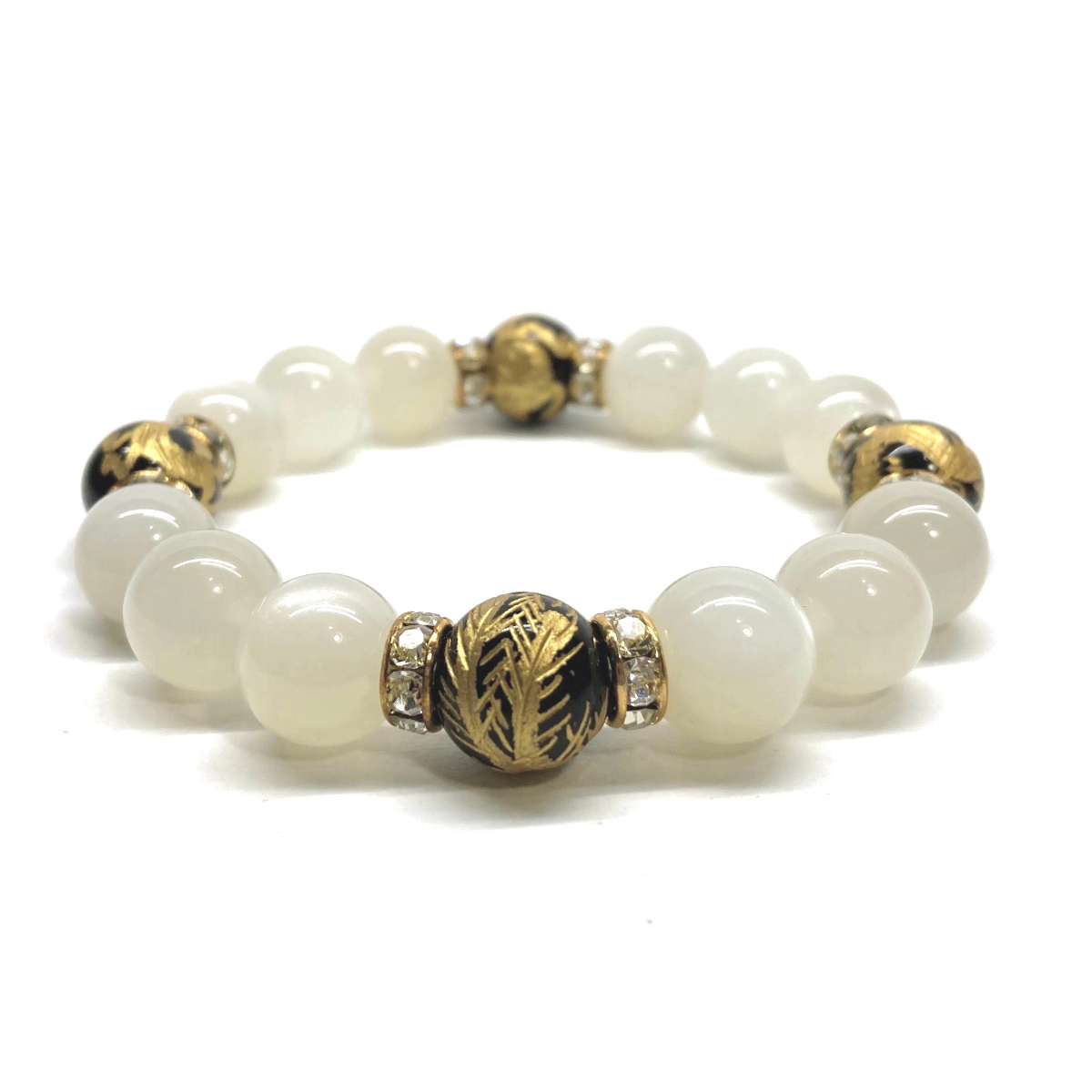 - 四神獣金彫オニキス×ムーンストーン 12mm パワーストーン ブレスレット天然石 青龍 白虎 玄武 朱雀 運気上昇 開運 金運 お守り 四神相応 G