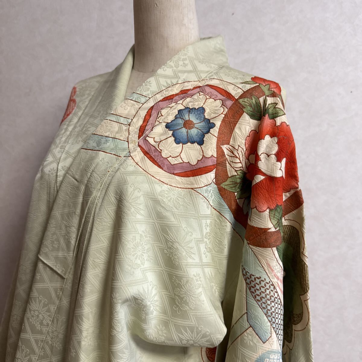 - き135◯ アンティーク 振袖 着物 正絹 和装 和服 着付け練習用に