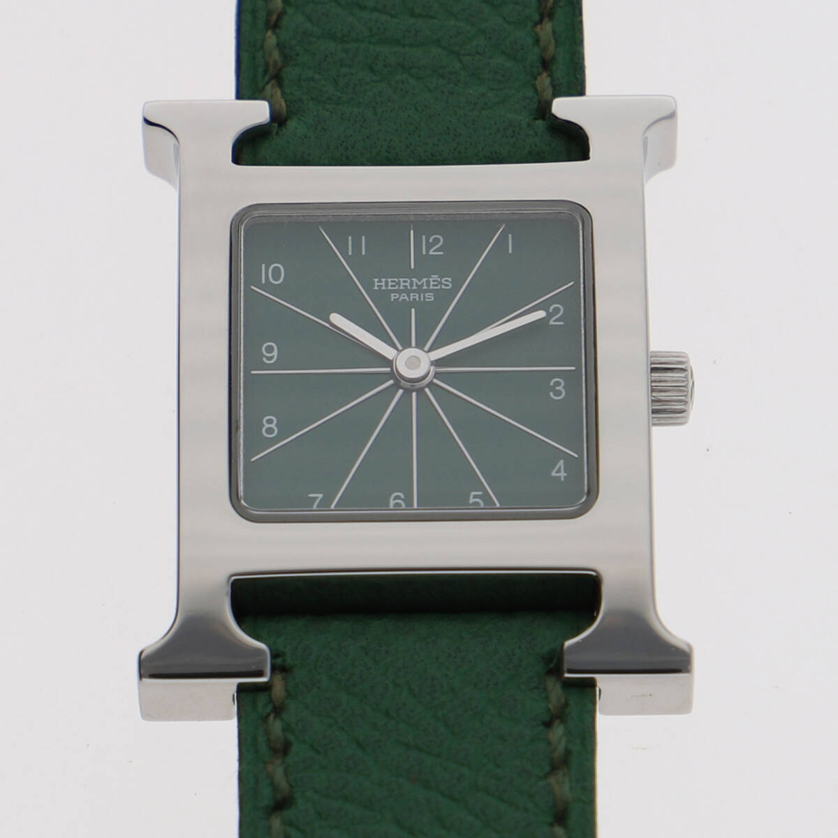 > HERMES エルメス HH1.210 Hウォッチ グリーンダイヤル SS/レザー クオーツ レディース【136770】