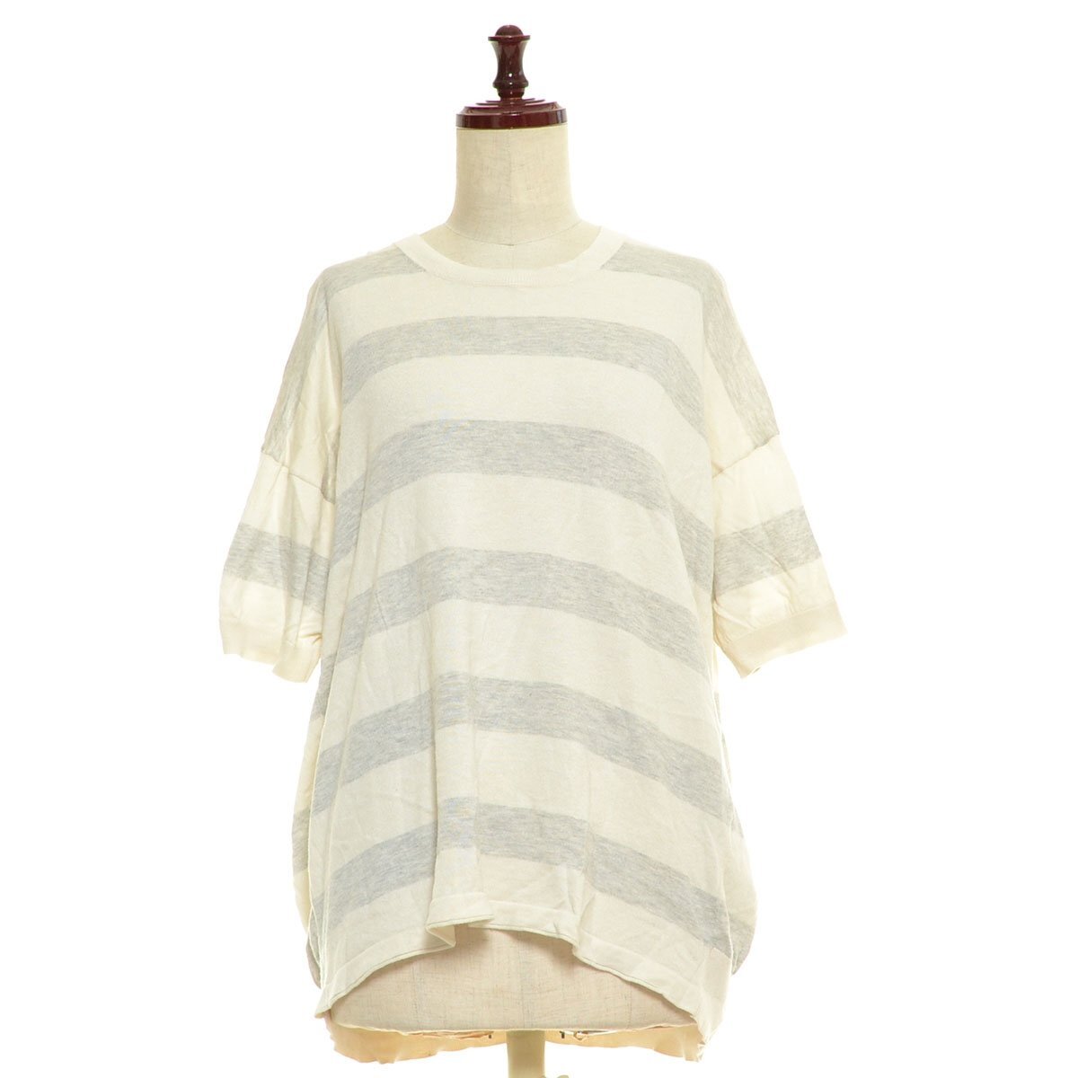 > ◇562461 C.T.plage 半袖カットソー ◇ボーダー シルクコットンニットソー サイズ42 絹綿 レディース グレー アイボリー