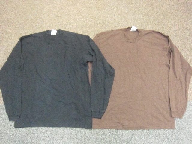 - USA製 PRO CLUB プロクラブ 長袖Tシャツ 2枚セット メンズXL LL 黒茶 クルーネック アメリカ製ティーシャツ 長袖カットソー 10189
