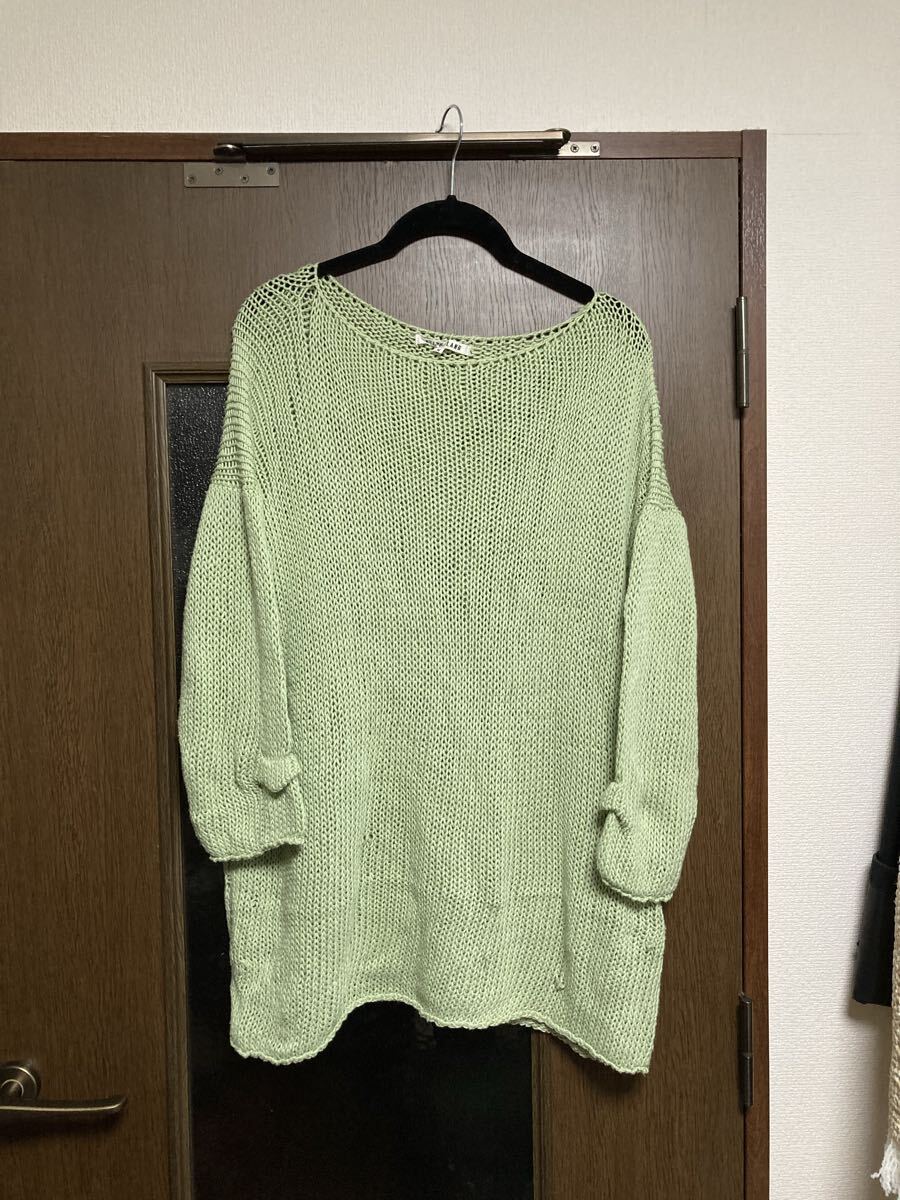 - Helmut Lang ヘルムートラング 80年代か90年代 初期 ローゲージ ニット 変形 グリーン 本人デザイン アーカイブ ヴィンテージ 希少