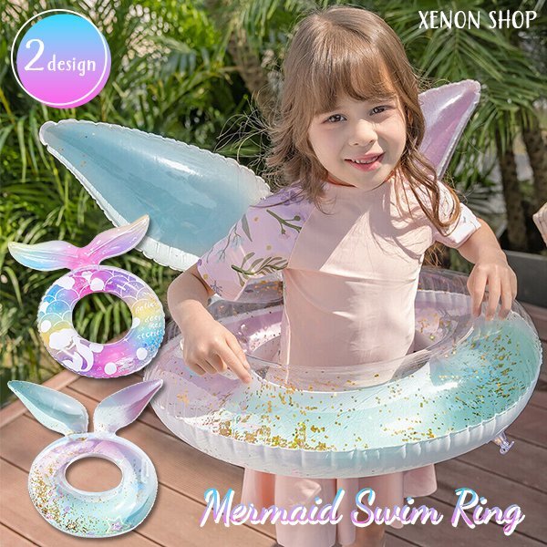 - マーメイドスイムリング 浮き輪 子供 女の子 キッズ O型 ラメ入り キラキラ 人魚 尾びれ O字 映え 水遊び プール 海 ビーチ リゾート レジ