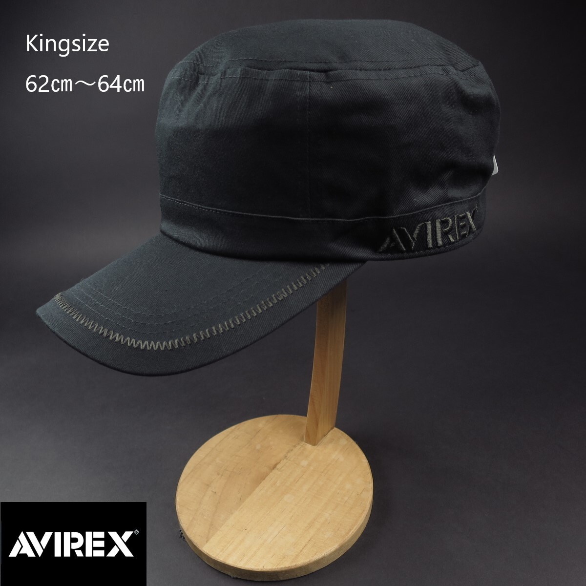 > 新品 ■ AVIREX アヴィレックス KING SIZE キングサイズ 同色刺繍ロゴ ワークキャップ/黒