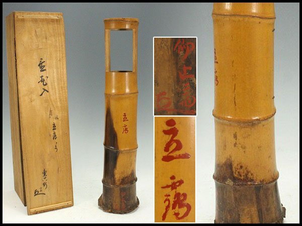 - 【金閣】茶道具 竹花生 書付 時代物 旧家蔵出 送料無料(XA872)