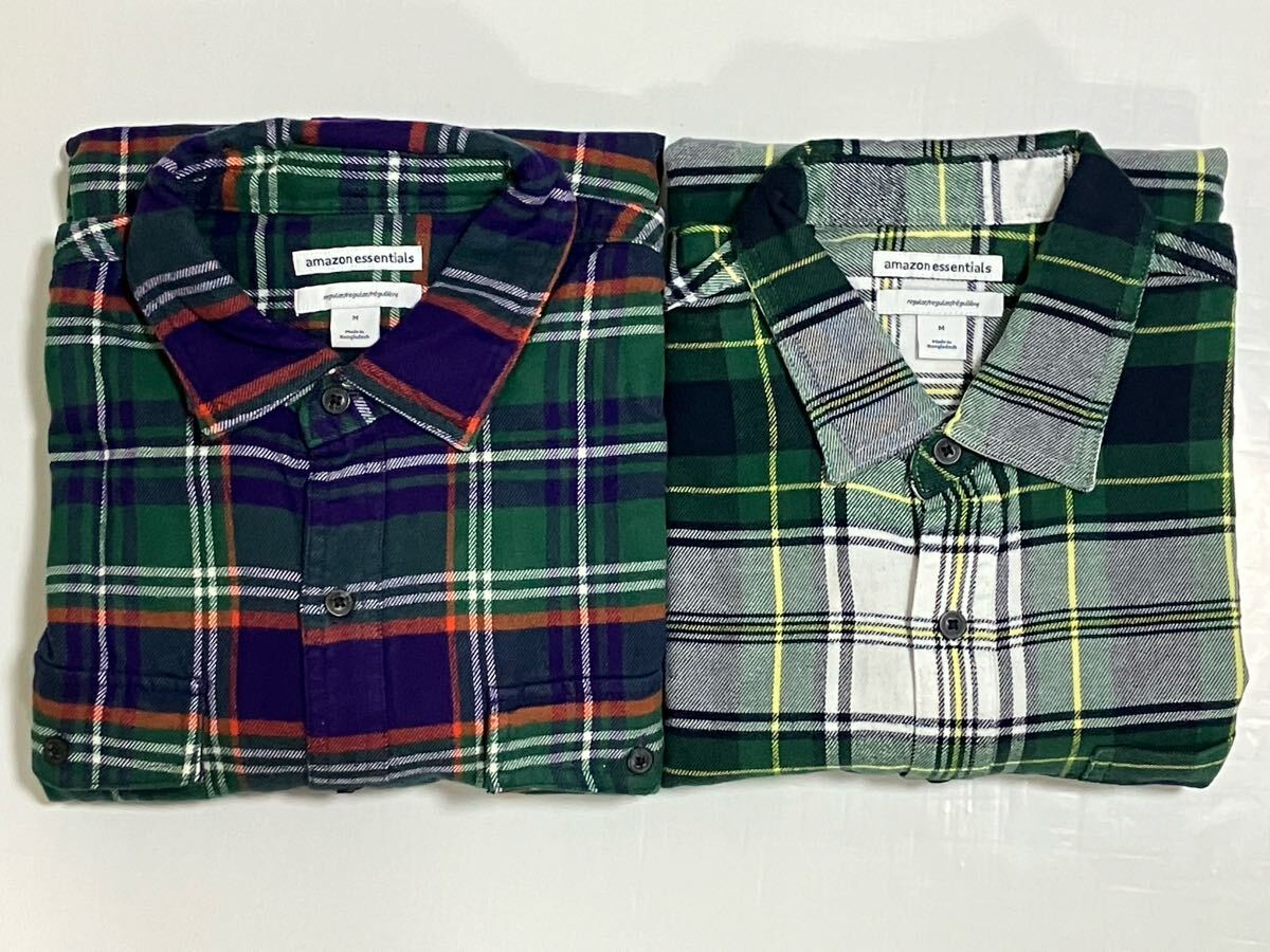 > 未使用 タグ付 2着 amazon essentials フランネルシャツ レギュラーフィット L 〜 XL 相当 アマゾン ブランド PB ネルシャツ シャツ