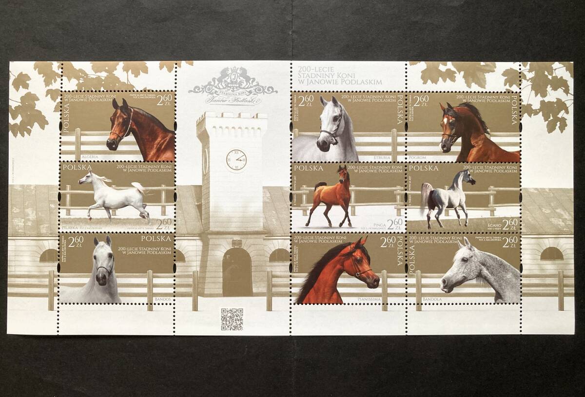 - 外国切手: ポーランド切手 「ヤヌフ・ポドラスキー種馬飼育場設立200年」 9種m/s 未使用
