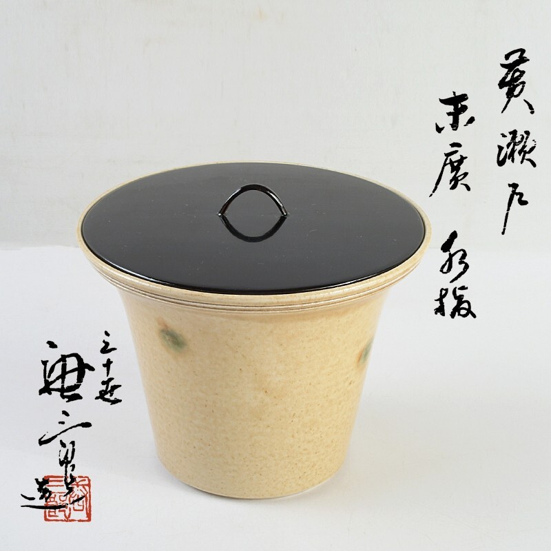 - 茶道具 瀬戸焼 赤津窯 加藤唐三郎造 黄瀬戸 末廣 水指 共布共箱 CDYE