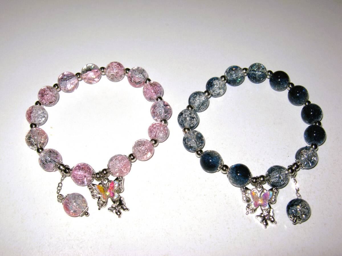 - 【レディース ビーズ ゴムブレスレット 2個セット】ピンク ネイビーブルー 蝶 可愛い かわいい エレガント フォーマル 上品 キュート
