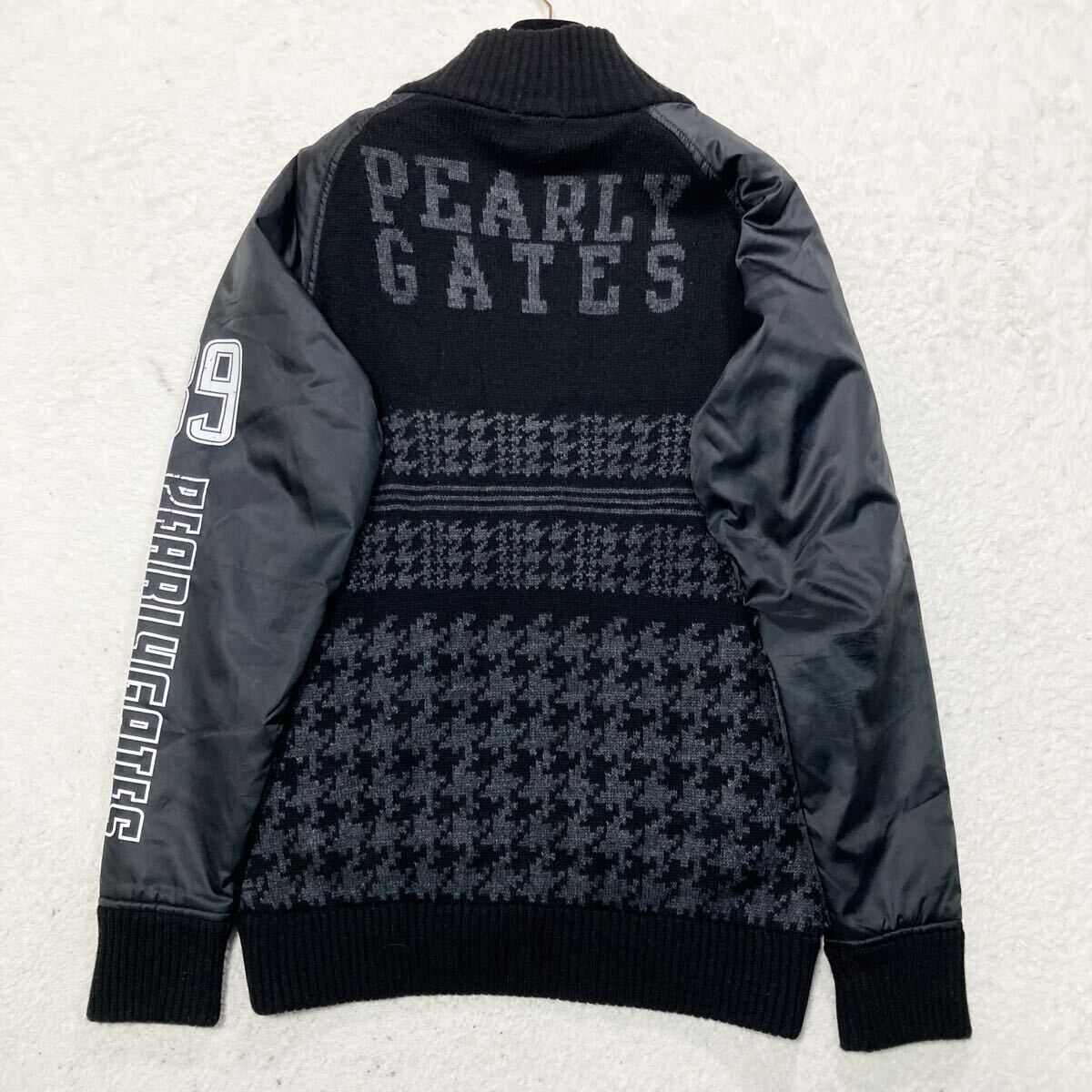- パーリーゲイツ PEARLY GATES ドライバーズ ニット セーター ゴルフウェア GOLF 4 M 千鳥柄 デカロゴ 黒 ブラック 切り替え 中わた 中綿