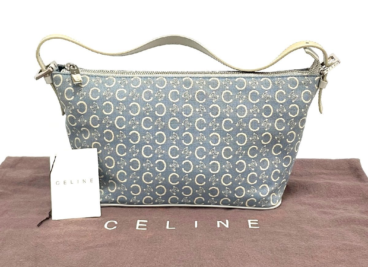 - CELINE セリーヌ Cマカダム ワンショルダーバッグ ハンドバッグ キャンバス ブルー 系 CE00/13