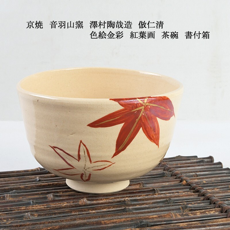 - 茶道具 京焼 音羽山窯 澤村陶哉造 倣仁清 色絵金彩 紅葉画 茶碗 書付箱 VHXF