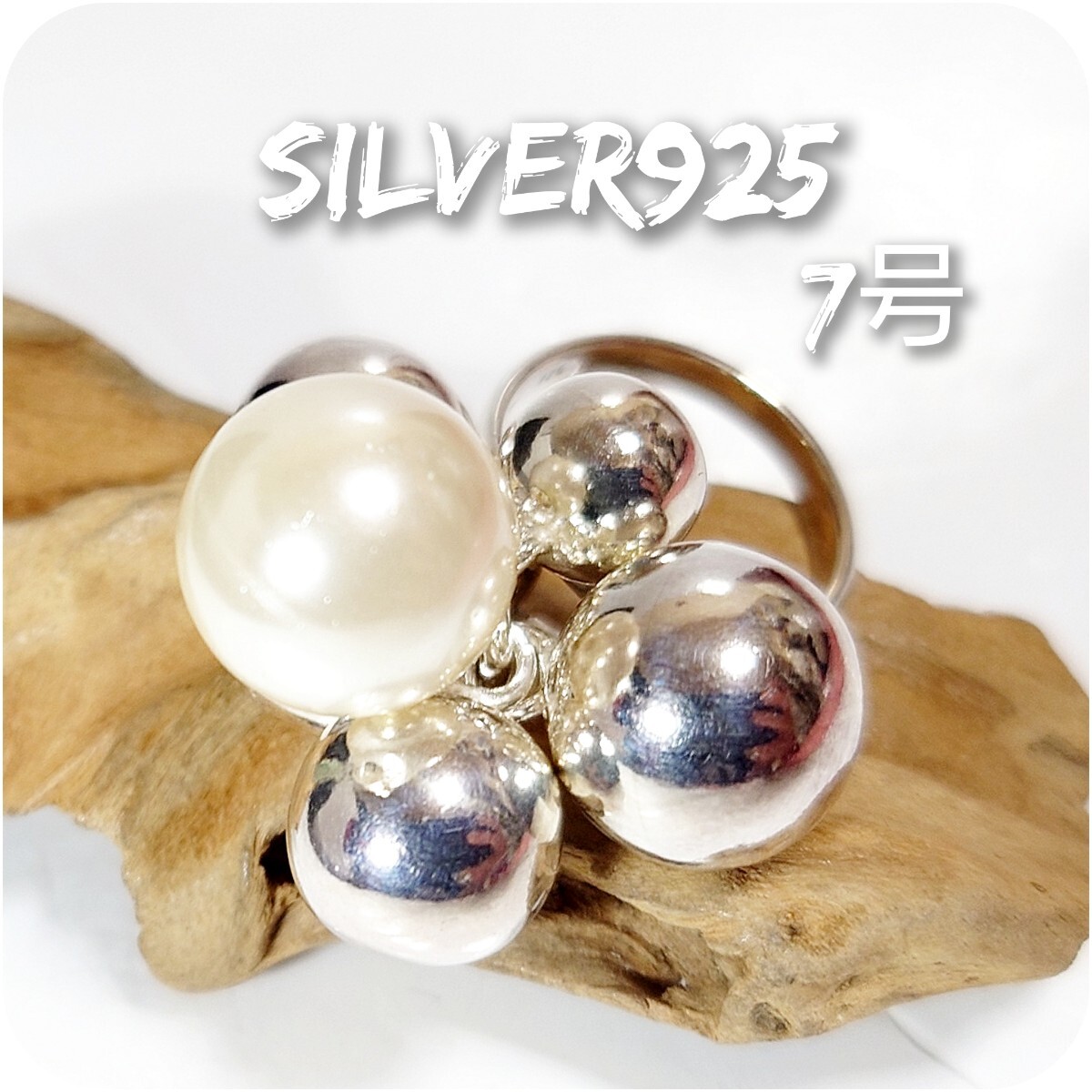 > 3903 SILVER925 パールボールリング7号 シルバー925 淡水 銀玉房 ピンキー アンティーク ヴィンテージ ハンドメイド☆大人気☆