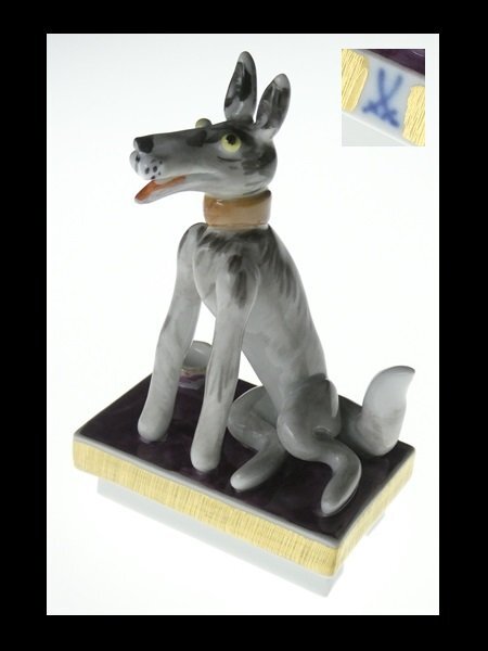 > マイセン Meissen ペーター・シュトラング 手捻り ハンドペイント ドッグ 犬 アニマル フィギュリン オブジェ 飾物 ① シェパード n589