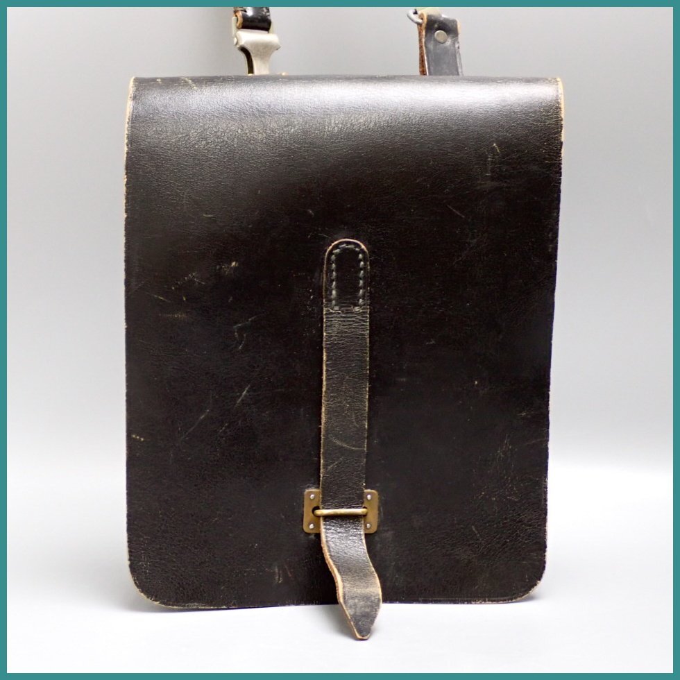 > ★東ドイツ NVA レザーマップケース/ショルダーバッグ ブラック/斜め掛け/ミリタリー/個人装備&2017300145