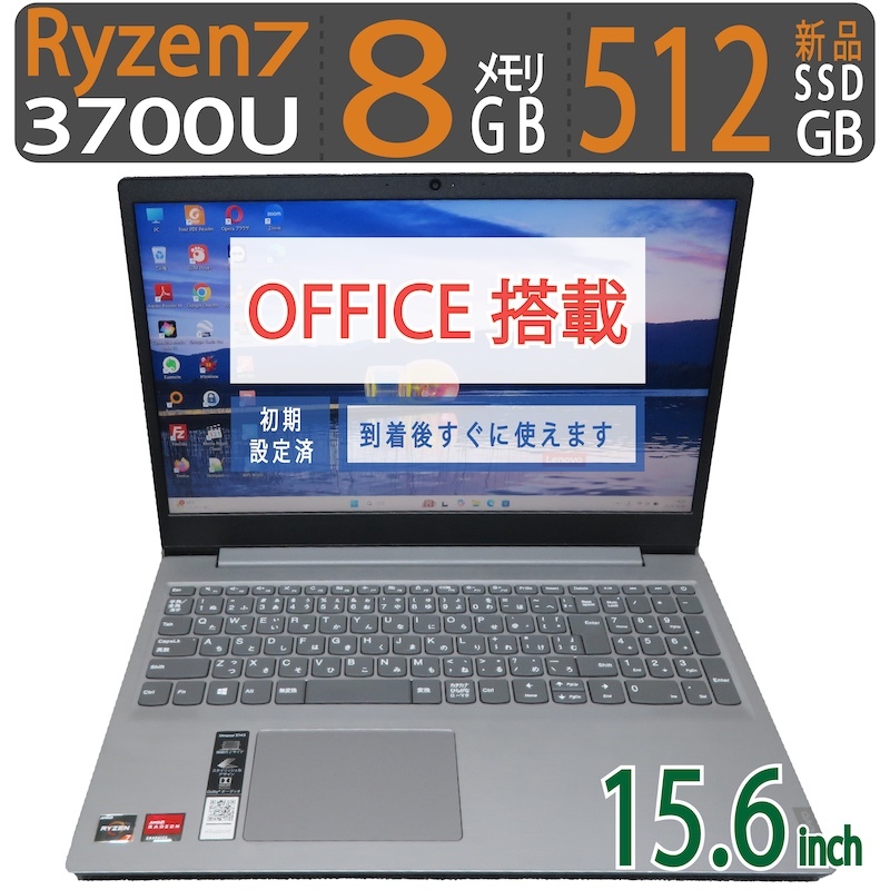 > 【テンキー・カメラ搭載】◆Lenovo IdeaPad S145-15API / 15.6型 ◆ Ryzen 7 /新SSD 512GB / メモリ 8GB ◆ win11 / Office