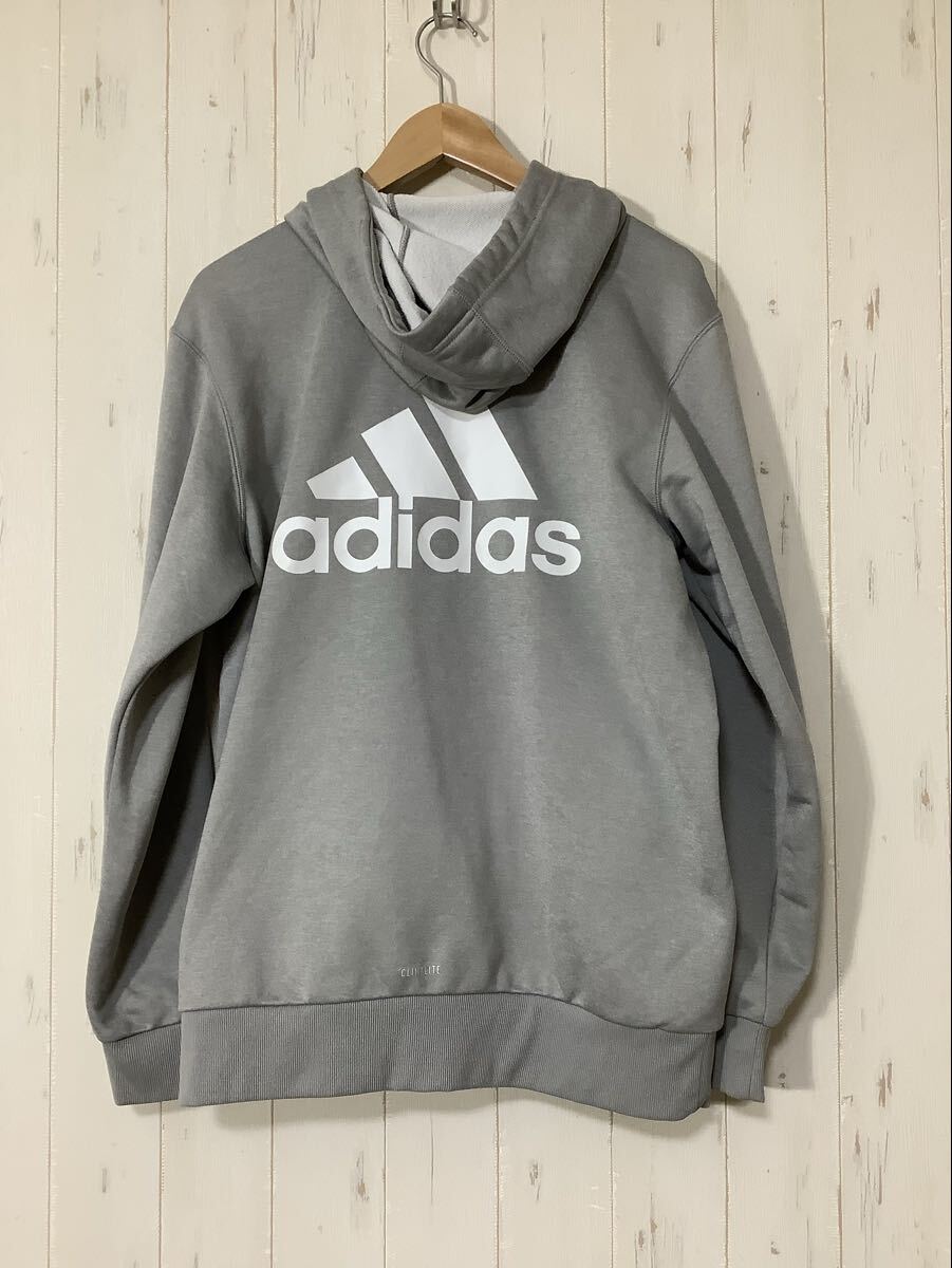- せ1702 adidas アディダス ジップアップパーカー XO グレー バックビッグプリント CLIMALITE 裏パイル
