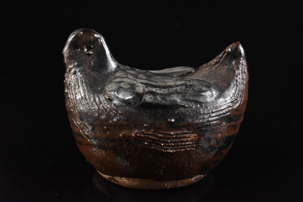 > 【雲】某資産家買取品 古美濃 茶釉 鳥彫刻形 水滴 書道具 古美術品(書道具旧家蔵出) F8553
