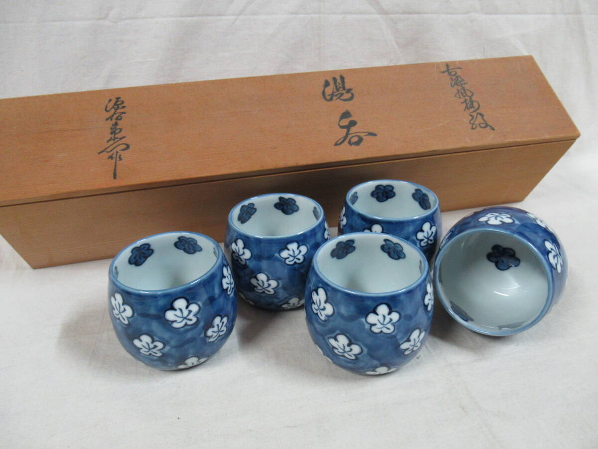 - 源右衛門窯 共箱 湯呑 梅紋 5客 茶器 茶道具