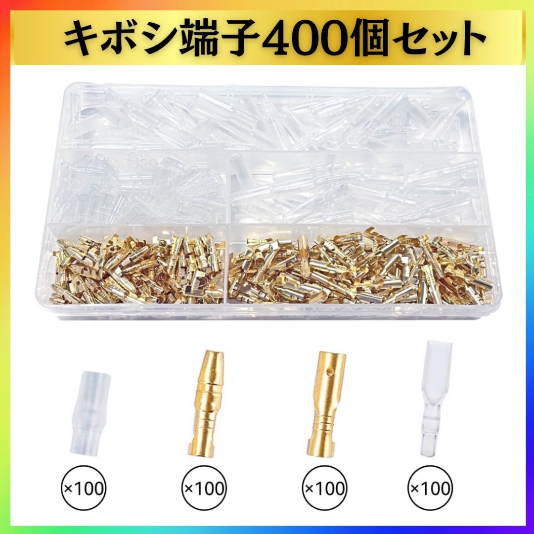 - ギボシ端子 セット 400個 ギボシセット 丸型 オス メス 絶縁スリーブ