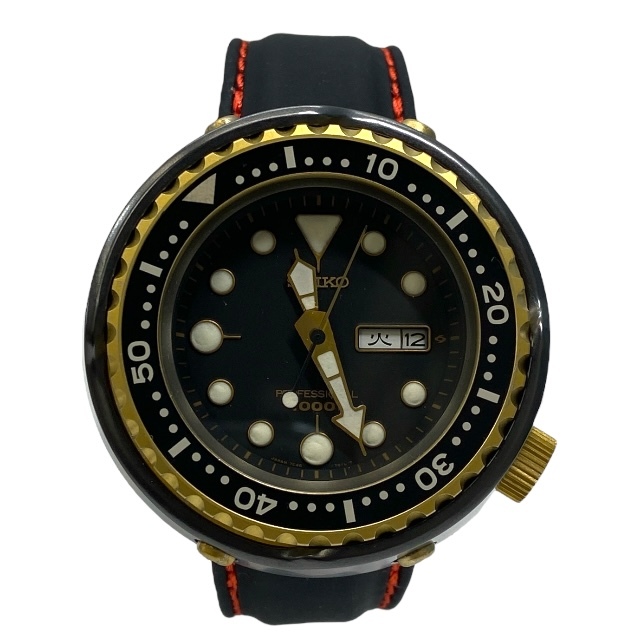 - 稼働品 セイコー 7C46-7009 プロフェッショナルダイバー クォーツ 腕時計 ラバー セラミック チタン ブラック ゴールド SEIKO