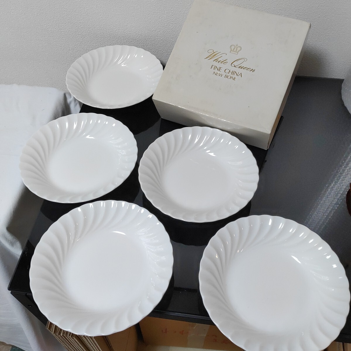 - 香蘭社 KORANSHA ホワイトクイーン スープ皿 クープ皿 プレート 5枚 使いやすい シンプル 1022-G5-TA12