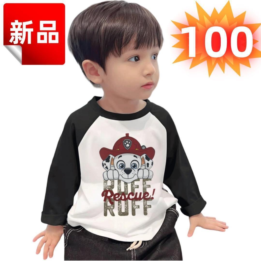 - ☆訳アリ☆★新品★子供服 パウパトロール マーシャル 長袖Tシャツ ラグラン キッズ 白黒 消防士犬 男の子 女の子 コットン 春秋冬 100cm