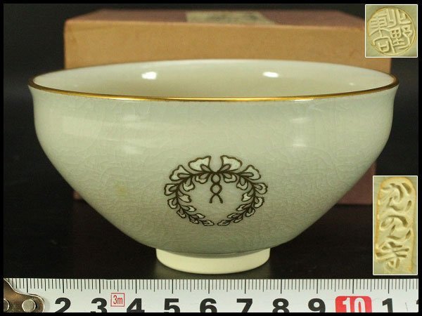 - 【銀閣】茶道具 白釉 天目茶碗 未使用 旧家蔵出 送料無料(A602)