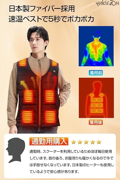 - 電熱ベスト 加熱ベスト ヒートジャケット M ブラック 16箇所発熱 40000mAhバッテリー付き USB給電 日本製繊維 丸洗い可能 防寒対策