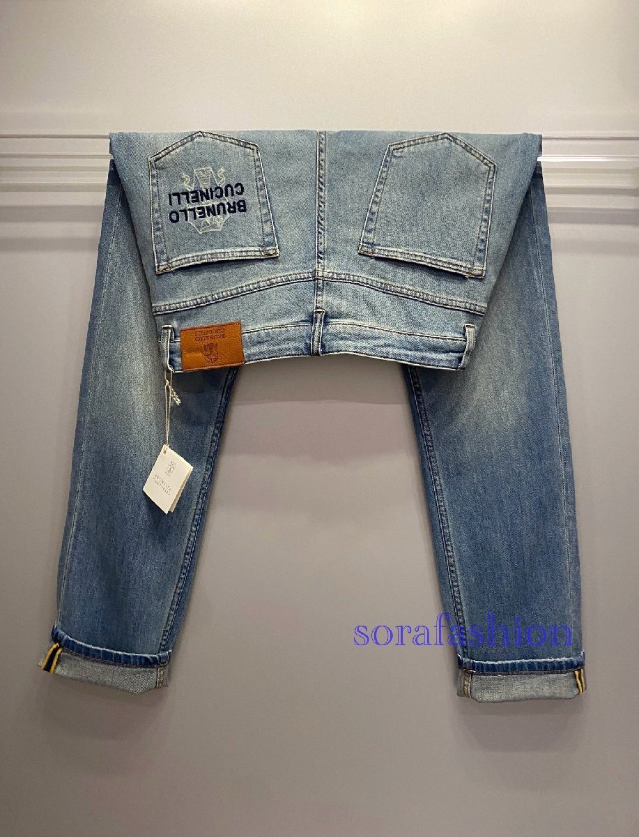 > BRUNELLO CUCINELLI ブルネロ クチネリ メンズデニムパンツ ストレートジーンズ ロング丈 W34 ボトムス 長ズボン コットン 刺繍ロゴ 紳士服