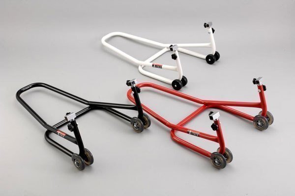 | 商品内容 | ■角パイプに特殊な丸ゴムを使用しているため、車種よって異なるスイングアームの角度に合わせるセルフフィッティングタイプ。工具がなくても高さが3段階に調整可能。一番低い位置では本当に軽い力でらくらくリフトアップ。 ◆カラー:赤 ◆受けタイプ:本体のみ ◆有効幅: 210~390mm |