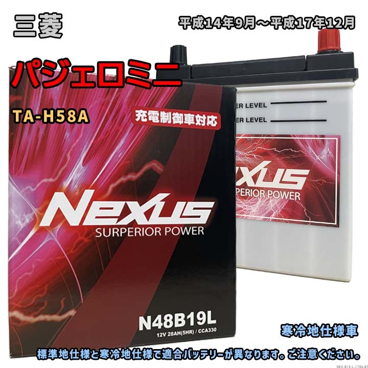- バッテリー NEXUS N48B19L 三菱 パジェロミニ TA-H58A 平成14年9月~平成17年12月 4WD 対応 B19L 互換 1784