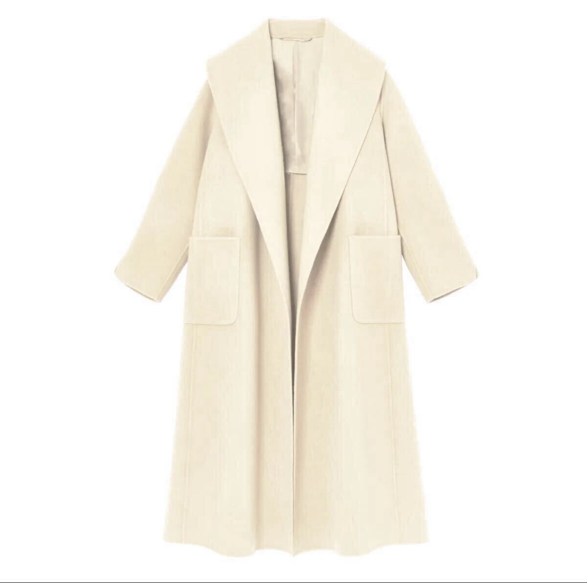 > アナイ★シャルムビーバーショールカラーコート 白 オフホワイト 34サイズ レディース アウター 長袖 ウール ウエストリボン リバーコート