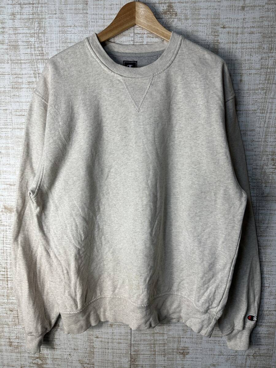 > ☆US古着 Champion チャンピオン スウェット トレーナー 無地 ロゴ刺繍 裏起毛 ホワイト白オフホワイト【L】コットンポリ ◆5324◆