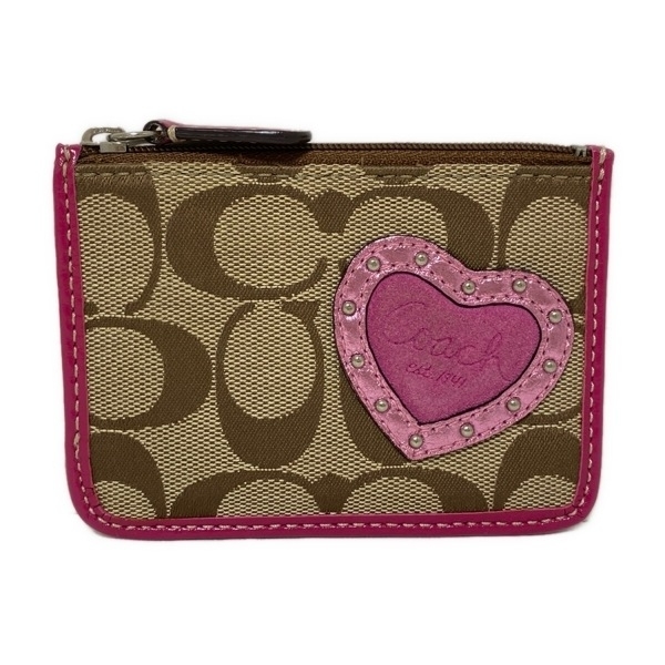 - コーチ COACH コインケース シグネチャー柄 レザー カーキ×ピンク 財布