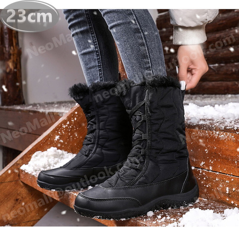 - レディース スノーシューズ 【970】 ブラック 23.0cm ムートンブーツ スニーカー ウィンターブーツ 裏起毛 防水 防寒 防滑 冬用靴 綿靴