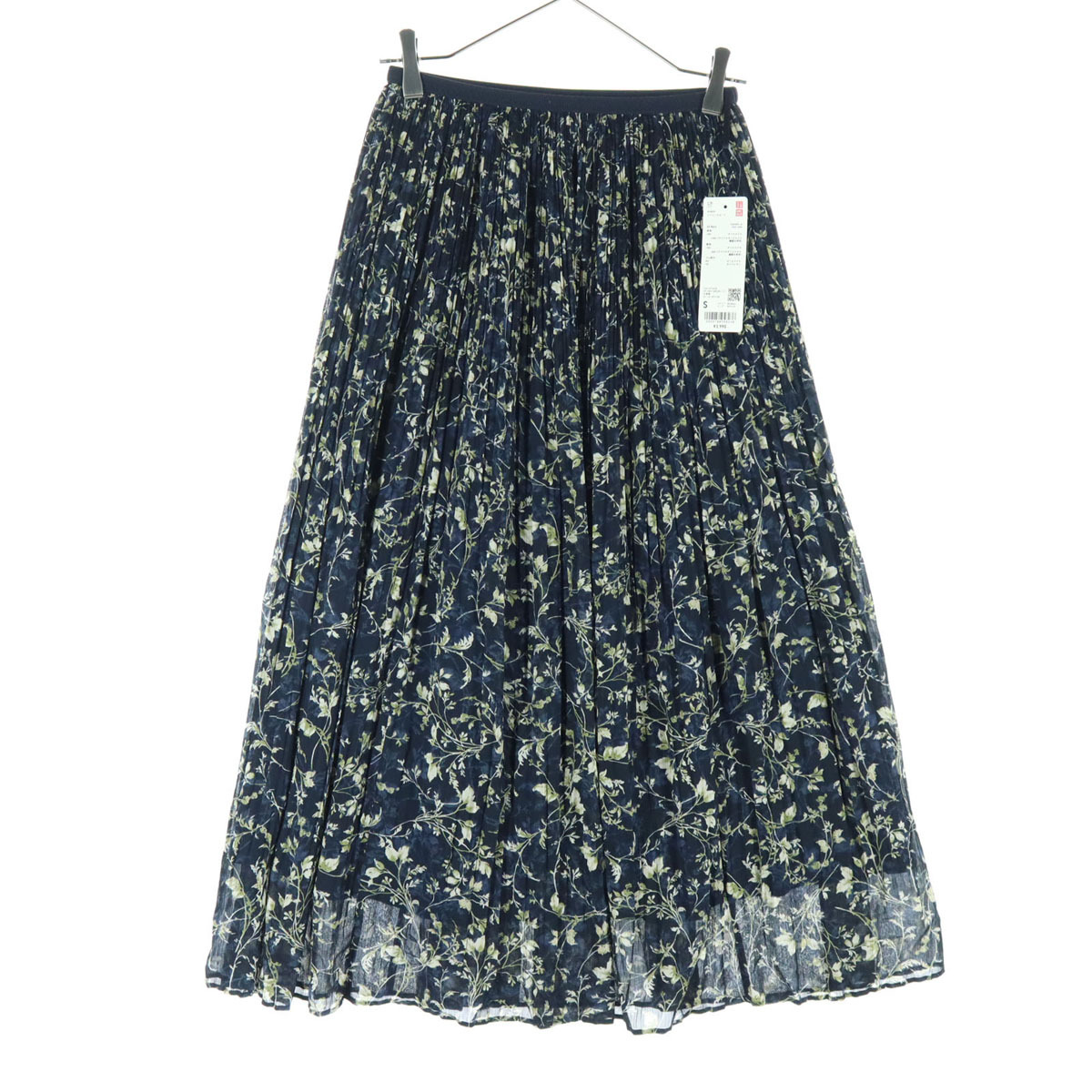 - 美品 UNIQLO ユニクロ 花柄 シフォン ロングスカート S ネイビー レディース