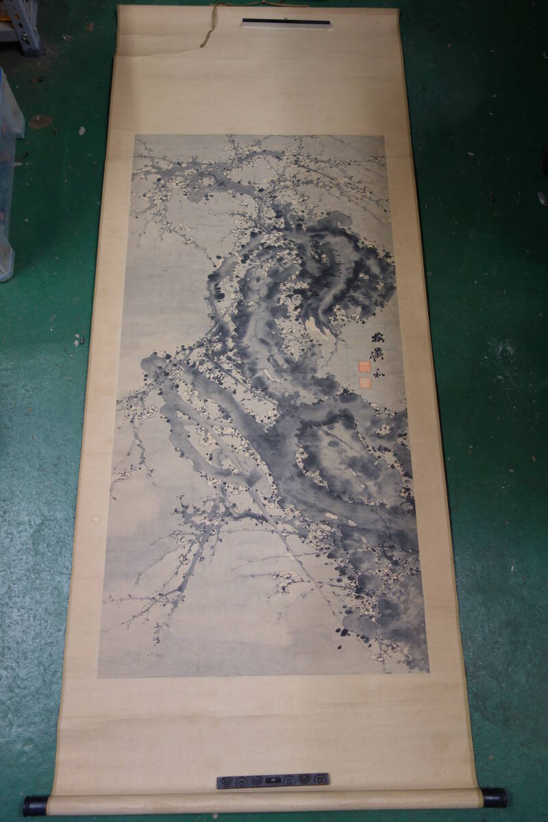 - 模写 掛軸 梅の絵 193cm×77cm 大きい 掛け軸 水墨 中国古美術 詳細不明 中古品 管理120