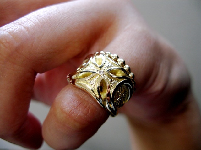 - 仁尾彫金『ゴールドギャラクシーアイアンクロスダイヤリング』ハンドメイド436