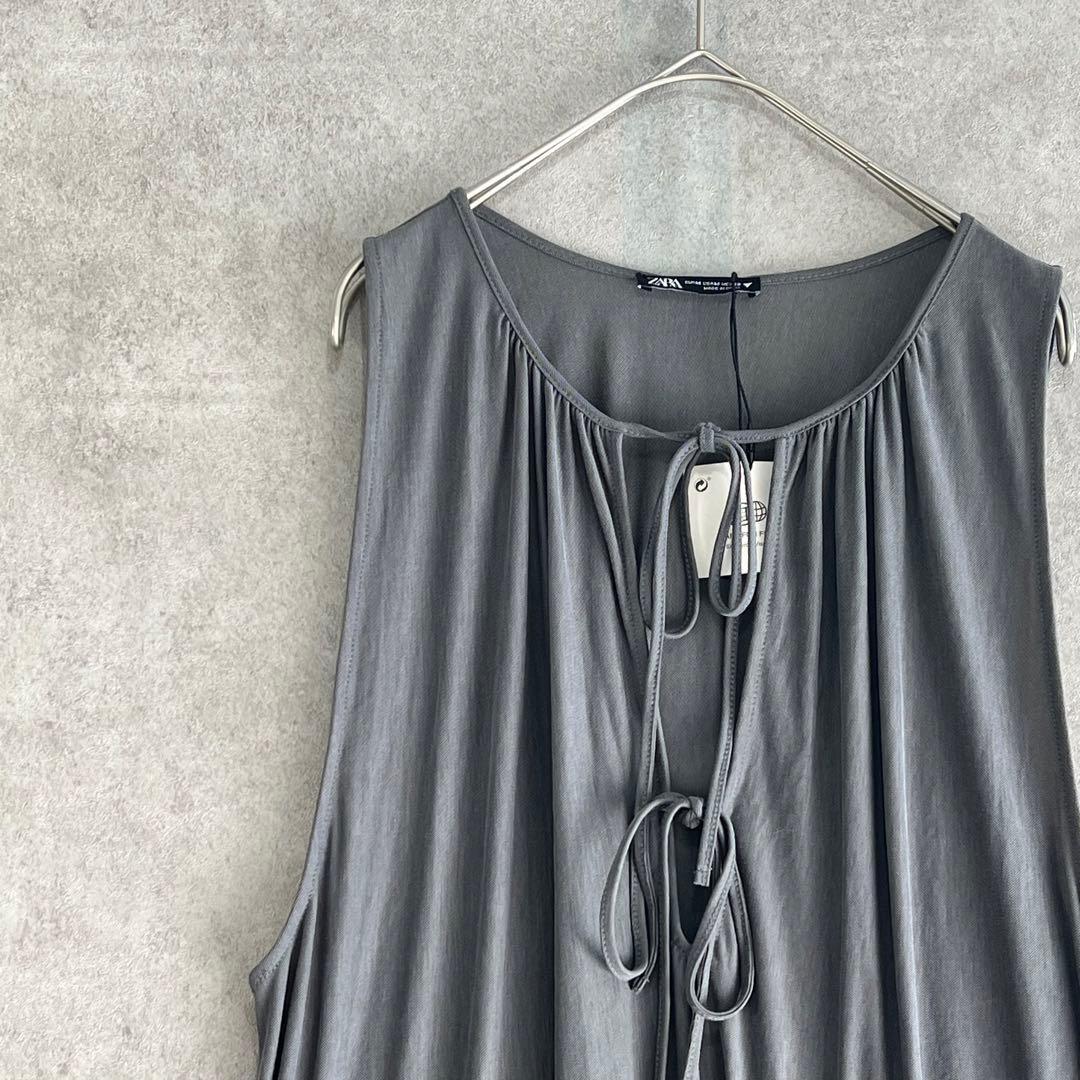 - 【タグ付】ZARAザラ(M)ひざ丈ワンピース ノースリーブ ティアード裾