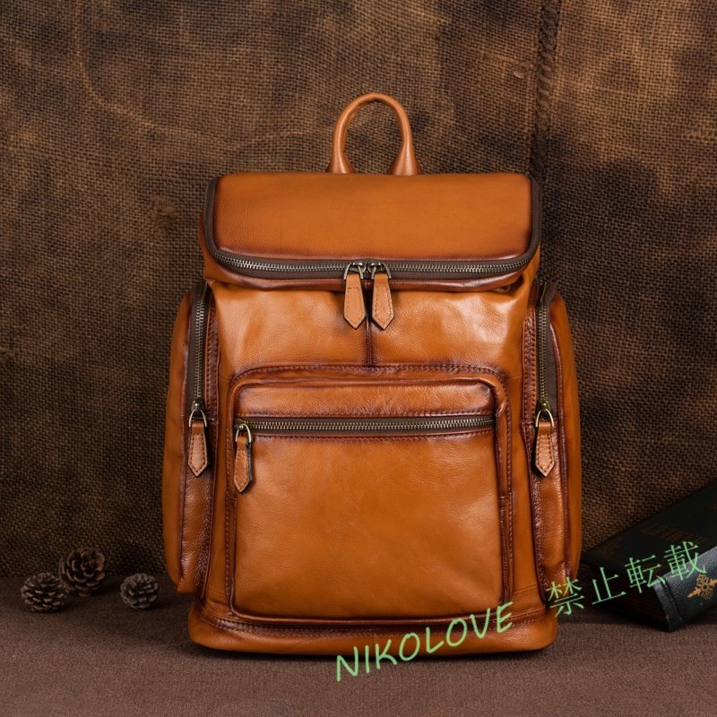 - ☆新品美品 レトロ風 おしゃれ ビジネスリュック本革メンズバッグ PC レザー 紳士用 バックパック職人手作り大容量 旅行 通勤 出張