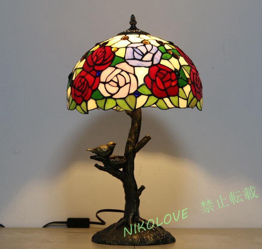 - ☆新品推薦 芸術品 ステンドランプ 花柄 照明 ステンドグラス レトロな雰囲気 技法 テーブルスタンド 室内装飾