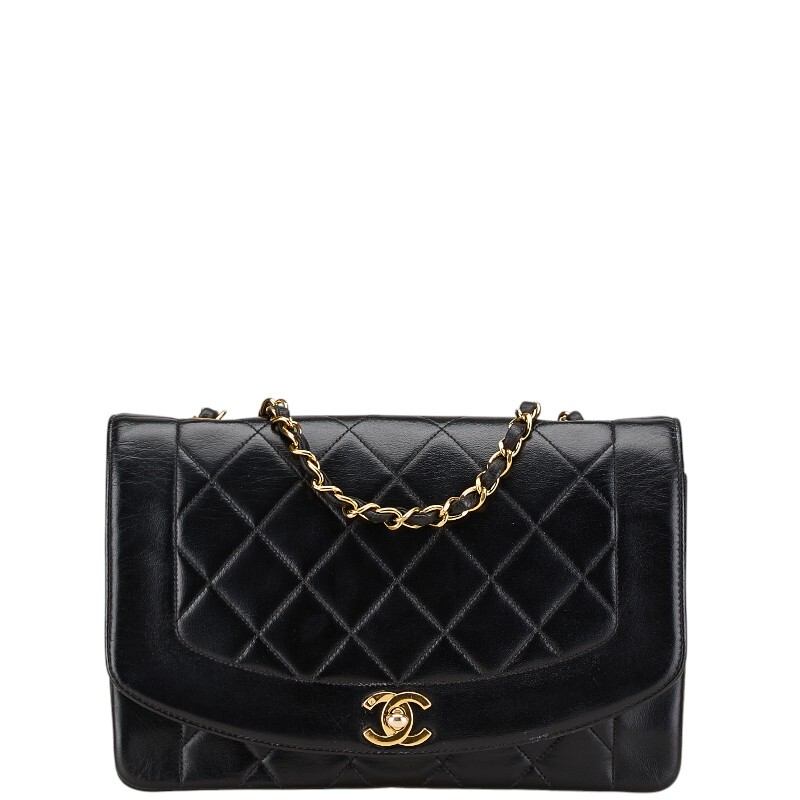 > シャネル マトラッセ ダイアナ25 ココマーク 斜め掛け チェーン ショルダーバッグ ブラック ラムスキン レディース CHANEL 【中古】