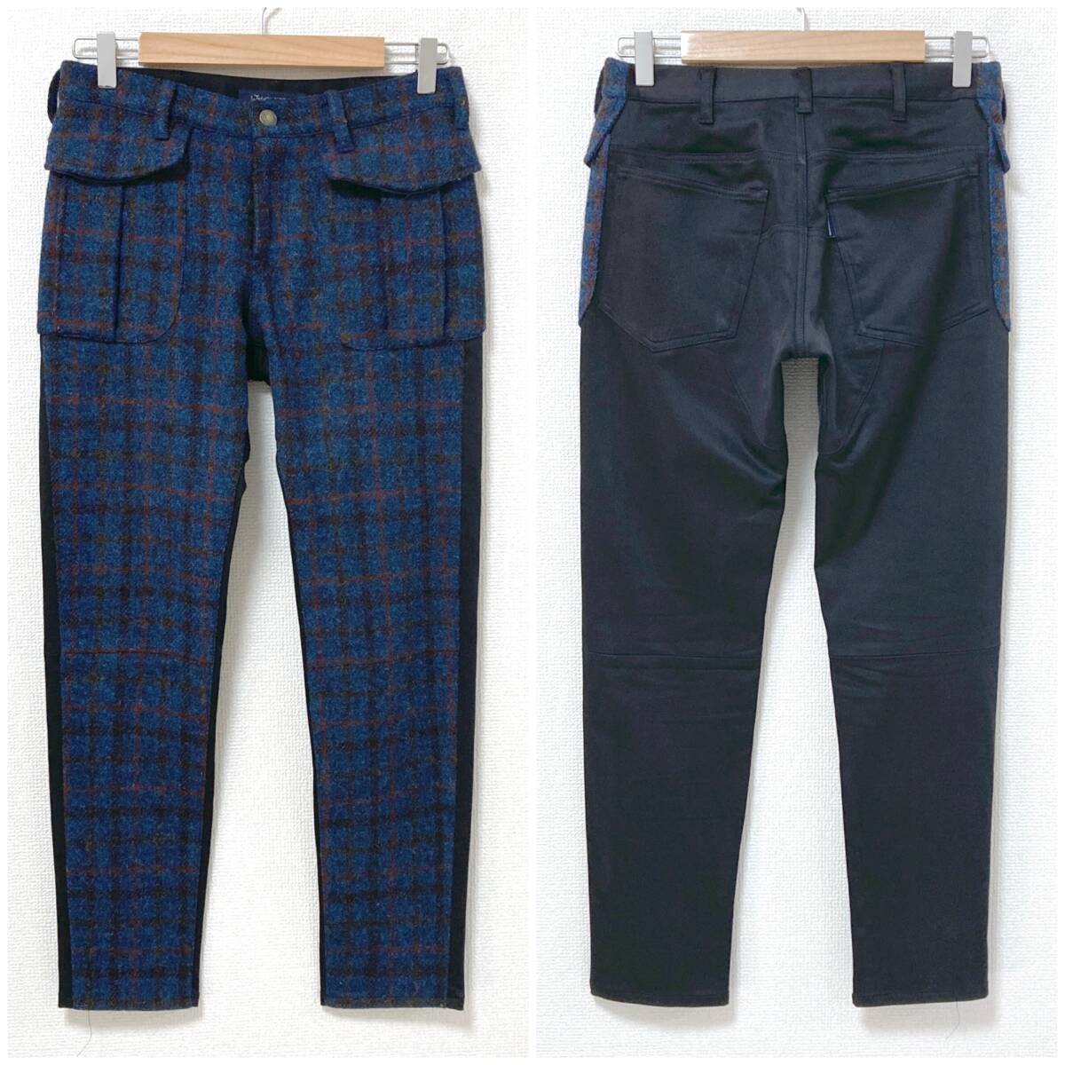 > 2014AW John UNDERCOVER ドッキング ウール 前後切替 スリム カーゴ パンツ チェック 1サイズ アンダーカバー スキニー archive 5090031