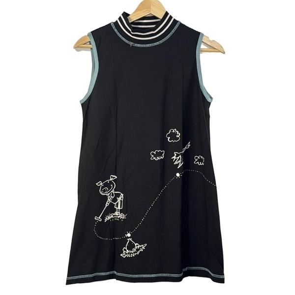 > アルベロベロ/オレボレブラ ALBEROBELLO/OLLEBOREBLA チュニック - 黒×ライトブルー×白 レディース ハイネック/ノースリーブ/ブタ/ビーズ