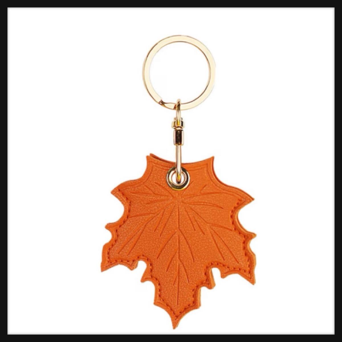 > 【開封のみ】Moydolo★レザー紛失防止キーチェーンケースカバー AirTagトラッカーホルダー用 落下防止 傷防止 かわいいカエデの葉