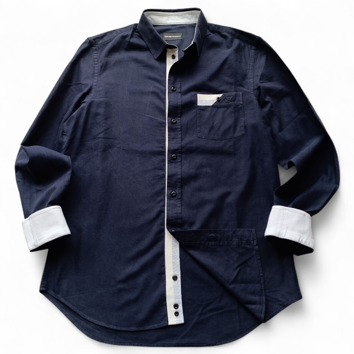 - 希少 40(M-L相当) イーグルロゴ刺繍 エンポリオアルマーニ 長袖シャツ ネイビー 紺 ドレスシャツ メンズ EMPORIO ARMANI